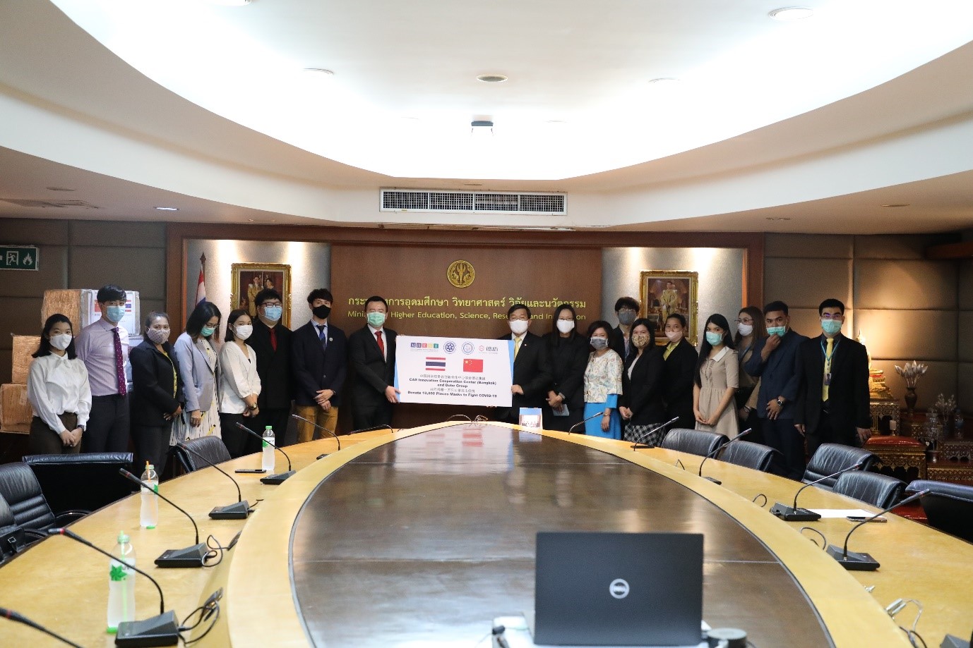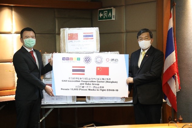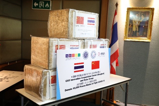 CAS Innovation Cooperation Center (Bangkok) have a good relationship with the Ministry of Higher Education, Science, Research and Innovation especially the collaboration in science, technology and innovation. This time is another support from CAS Innovation Cooperation Center Bangkok and Dobe Group to donate 10,000 pieces of masks for COVID-19 emergency response in Thailand.